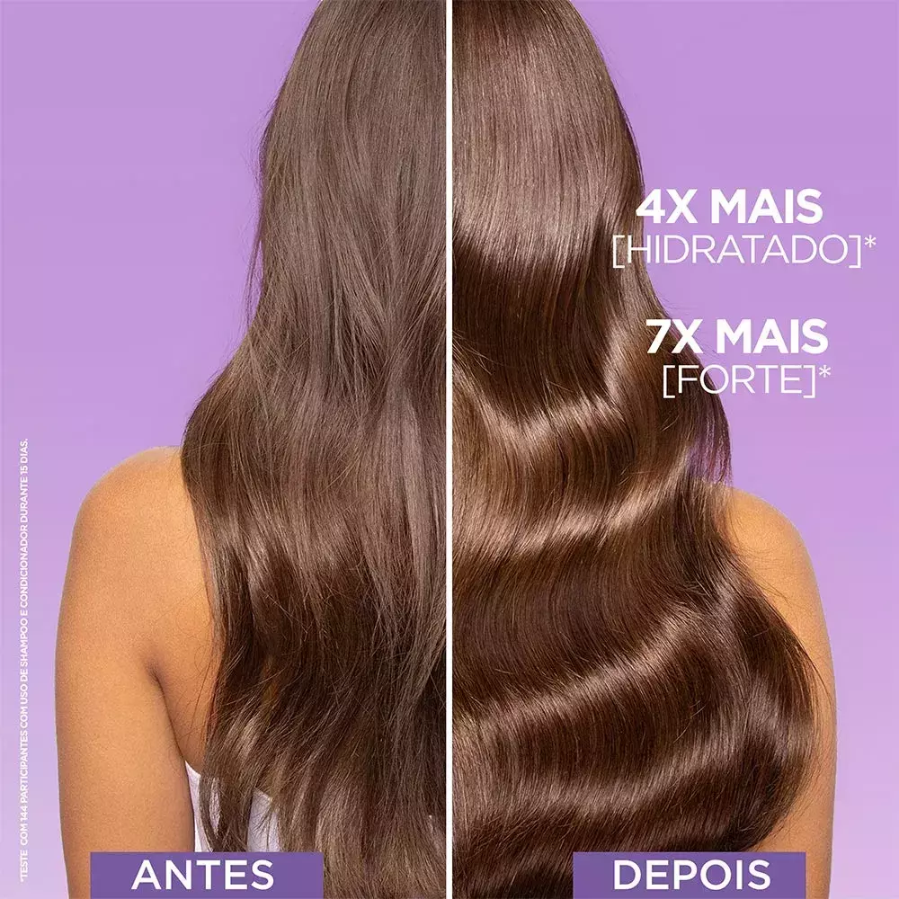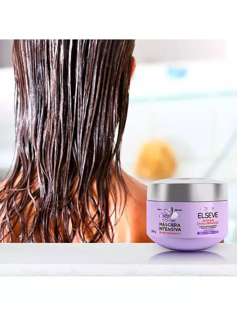 A máscara hidra hialurônico tratamento intensivo elseve hidrata profundamente os fios sem pesar proporcionando cabelos mais leves soltos e com movimento sua fórmula enriquecida com ácido hialurônico combate o ressecamento e preenche a fibra capilar devolvendo maciez brilho e vitalidade aos cabelos desidratados