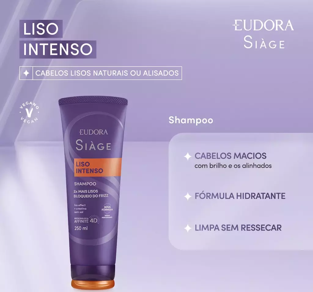 Seus cabelos lisos merecem um cuidado que vai além da limpeza! O Shampoo Liso Intenso Eudora foi desenvolvido com a exclusiva Tecnologia Lisotox, que limpa suavemente enquanto prepara os fios para um liso disciplinado, com movimento e sem frizz.